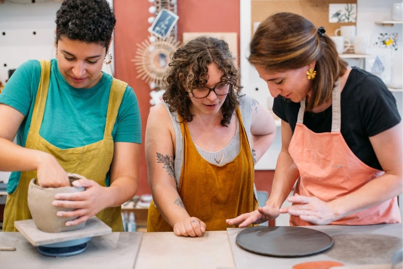 Réaliser plusieurs cours de poterie permet de découvrir toutes les étapes du travail de la terre. Vous pouvez fabriquer des pièces en modelage et en tournage. Nous les cuisons une première fois à 980°C puis vous venez les émailler lors de votre dernière séance. Nous nous occupons de la seconde cuisson à 1280°C. Votre création est prête environ un mois après votre atelier ! Les cartes de cours sont utilisables pour réserver vos ateliers de tournage, modelage et émaillage (2h).